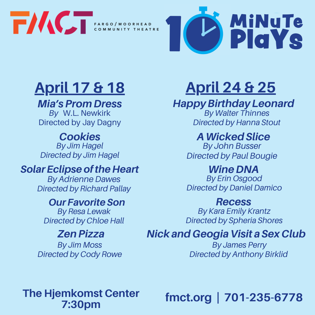 FMCT’s 10 Minute Plays return in 2026! Featuring ten short plays performed across two weekends, FMCT’s sixth annual play festival will bring local, regional, and national talent to the stage.