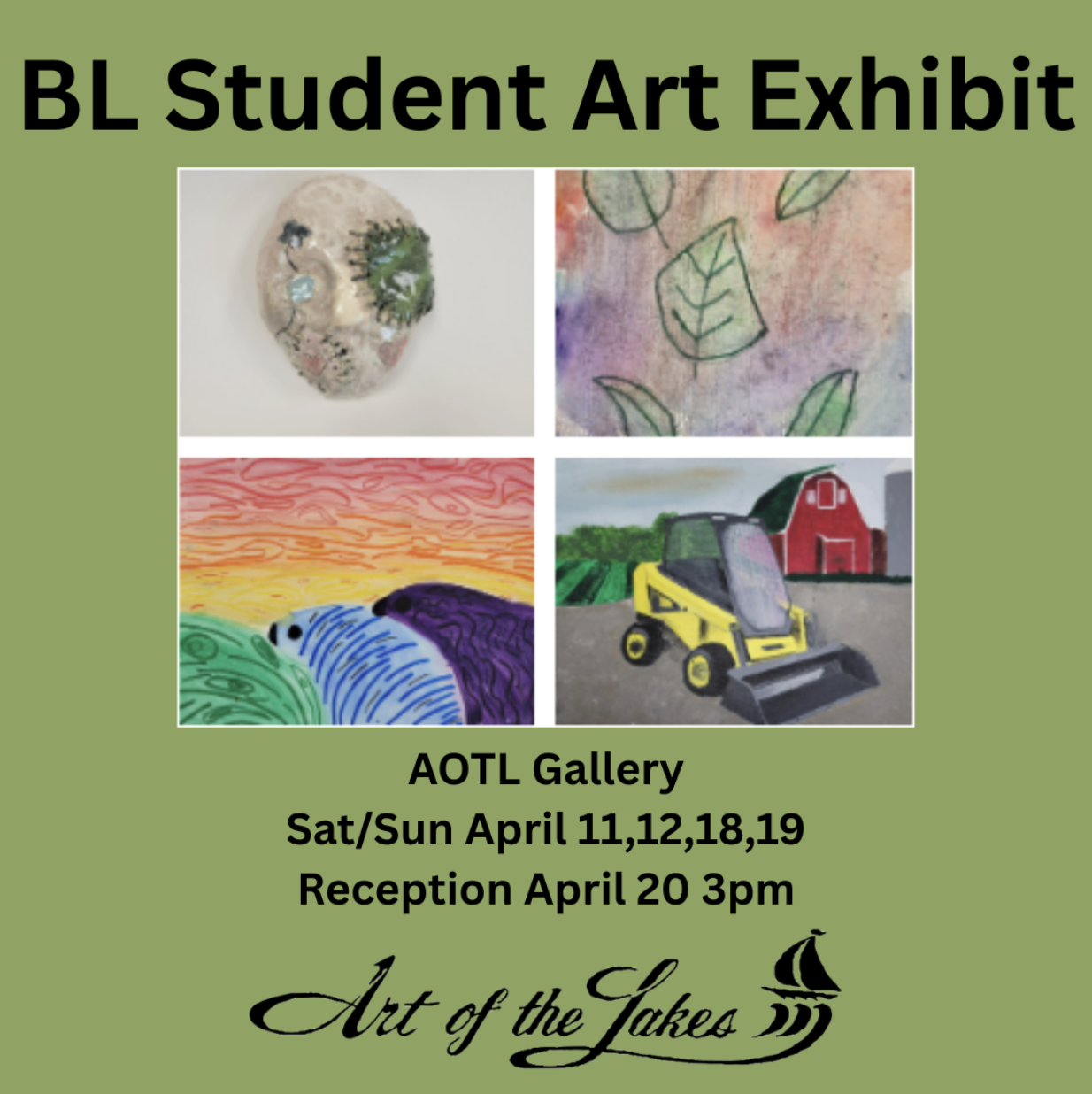 Join Art of the Lakes Gallery for the closing reception of its Student Art Exhibit, featuring artwork by Battle Lake students in grades K–12.