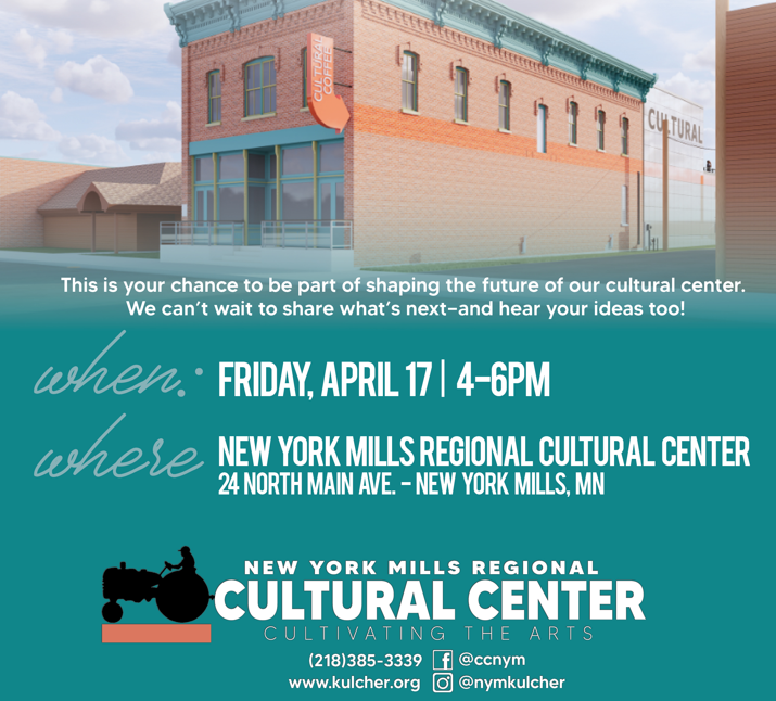 Join the New York Mills Regional Cultural Center for a Capital Campaign Kick-Off Open House celebrating the launch of its Cultivating Community Capital Campaign.