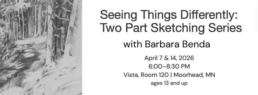 Teens and adults ages 13+ are invited to build foundational drawing skills in this two-part sketching series. Participants will explore contour drawing, basic forms, value shading, gesture drawing, angles, and drawing faces. No prior art experience necessary.